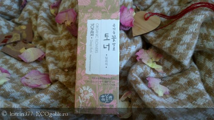 Второй этап - нанести тонер. Можно и тоник, но попробовать корейский тонер я мечтала давно, но состав чистый найти не могла. Итак, ура, у меня Organic flower toner deep rich Whamisa - взяла его вместе с маской. Но он нам очень пригодится и помимо маски - читайте до конца!