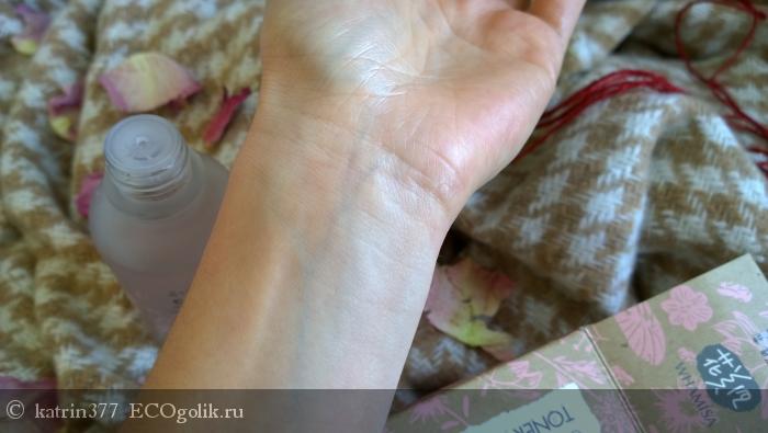 Наношу тонер похлопывающими движениями, даю впитаться. Можно использовать утром и вечером.