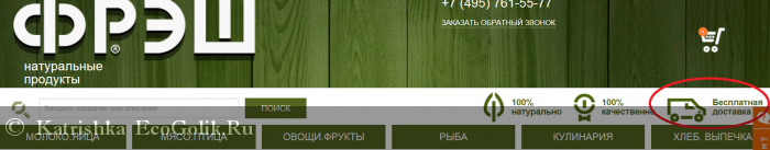 Позвонил молодой человек Илья. Сообщил, что на данный момент из моего заказа нет в наличии вырезки молодого бычка. Я так поняла, что ее поставляют где-то раз в неделю, по четвергам. Поэтому доставка перенеслась на четверг. Кстати, по доставке есть на сайте некоторая так скажем «завлекалочка». Но она с оговорками. На сайте указано: бесплатная доставка.