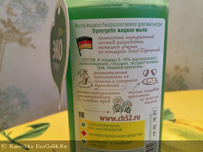 Katrishka: Мыло жидкое биоразлагаемое для мытья рук Synergetic