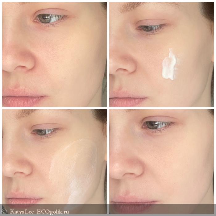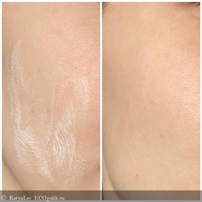 Крем без труда наносится из-за своей легкой текстуры, не жирнит и не оставляет липкой пленки после себя, быстро впитывается.