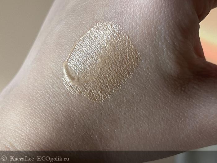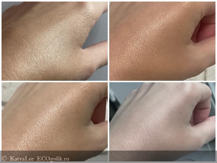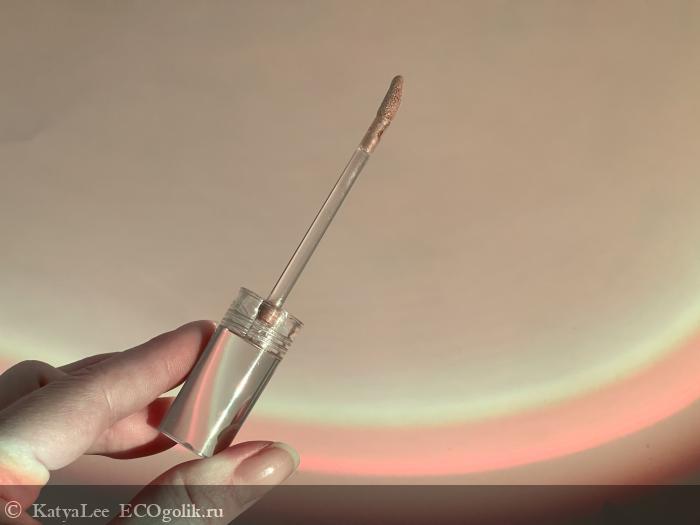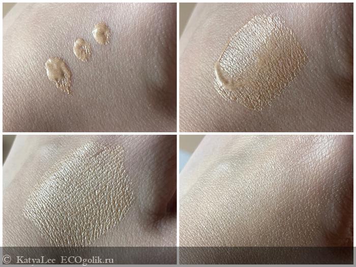 Консистенция/Текстура: жидкий хайлайтер с золотистым оттеном, крупных белсток не имеется, только легкий шиммер который абсолютно не ощущается на коже, текстура однородная.