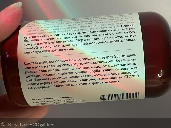 Реакция кожи: несмотря на цитрус, кожа совершенно нормально реагирует. Нет раздражения и воспаления. Даже если нанести молочко на зону после депиляции - щипать не будет! ЗА это я молочко полюбила еще больше!