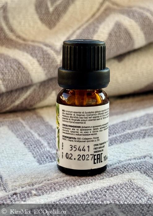 Limonum essential oil (эфирное масло лимона), Eucalyptus globulus essential oil (эфирное масло эвкалипта), Abies alba essential oil (эфирное масло пихты), Rosemary (rosmarinus officinalis) essential oil (эфирное масло розмарина), Melaleuca alternifolia (tea tree) leaf essential oil (эфирное масло чайного дерева), Citrus aurantium essential oil (эфирное масло апельсина), Pimpinella anisum essential seed oil (эфирное масло аниса), Thymus vulgaris (common thyme) essential oil (эфирное масло чабреца).