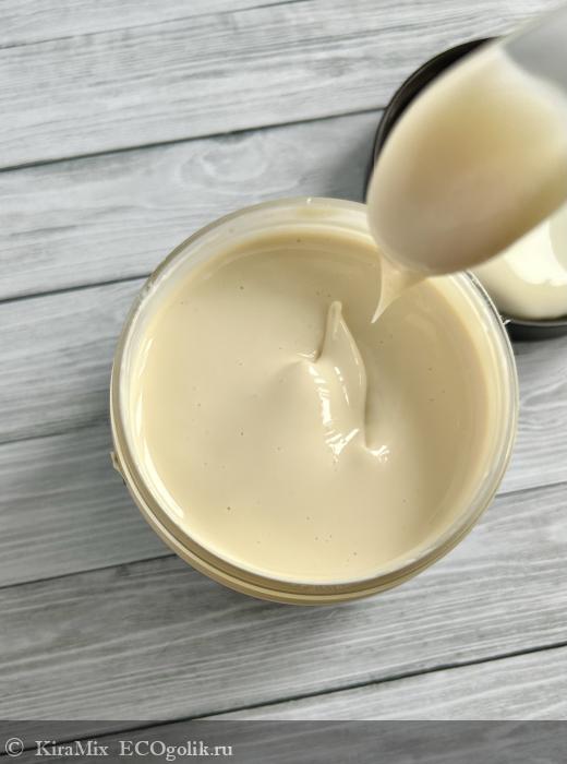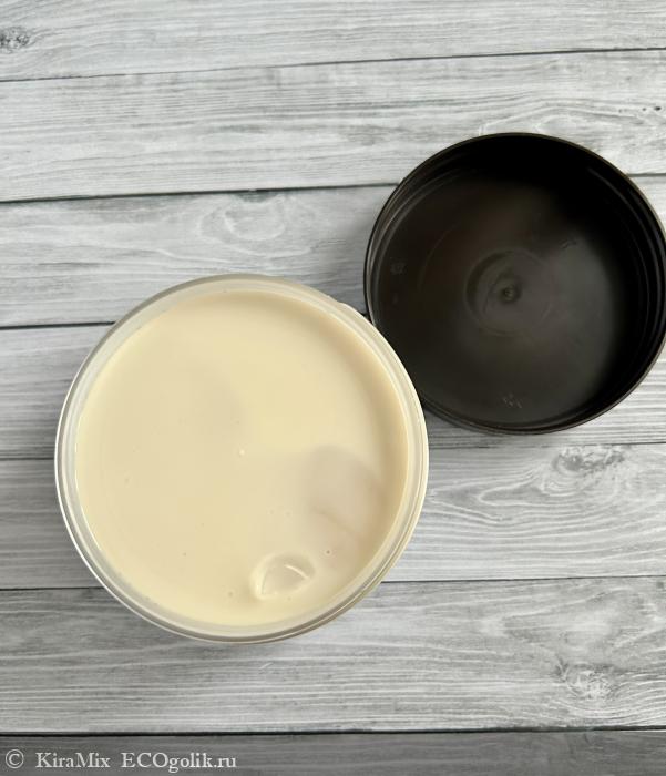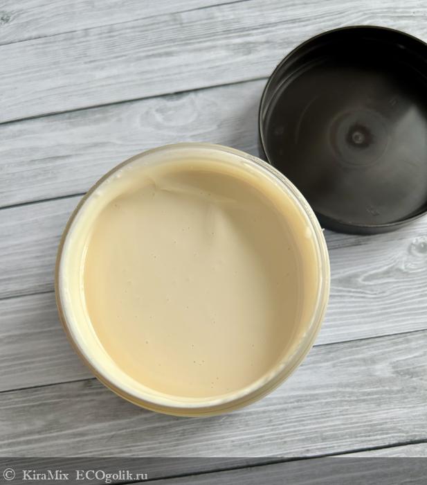 - Текстура. Это самая необычная маска в моем арсенале, напоминает привычную альгинатную маску для лица, когда ее только-только приготовил. Цвет песочно-желтый, вкраплений никаких нет. Консистенция достаточно густая.