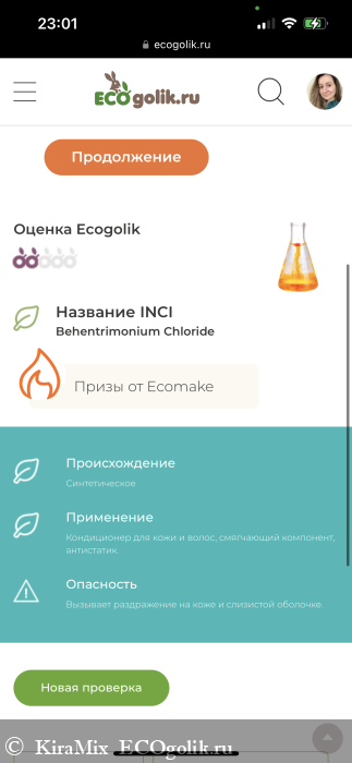 Конечно же, сразу пошла смотреть, что же это за зверь такой и оказывается, что он способен вызвать раздражение при соприкосновении либо со слизистыми, либо же с кожей, но это маска для волос, которую производитель рекомендует наносить отступая от корней и именно так я и делаю, поэтому для себя вреда, неприятных реакций или чего-то негативного отметить не могу.