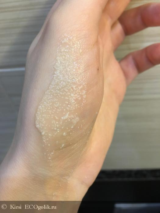 Когда я стала наносить средство на тело, пришла в небольшое замешательство, не перепутала ли я масло со скрабом? Дело в том, что структура данного масла не совсем однородна.