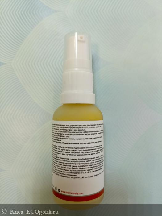 С первых же секунд сыворотка покорила меня своей нежной гелевой текстурой с легким золотистым оттенком, который ей придает натуральное масло облепихи. Она буквально тает на коже, мгновенно впитываясь и не оставляя ни малейшей липкости или жирного блеска. После нанесения я ощутила приятную упругость — так работал природный лифтинг-комплекс, но достаточно было нанести мой обычный крем через 10 минут, и кожа стала невероятно мягкой и ухоженной.