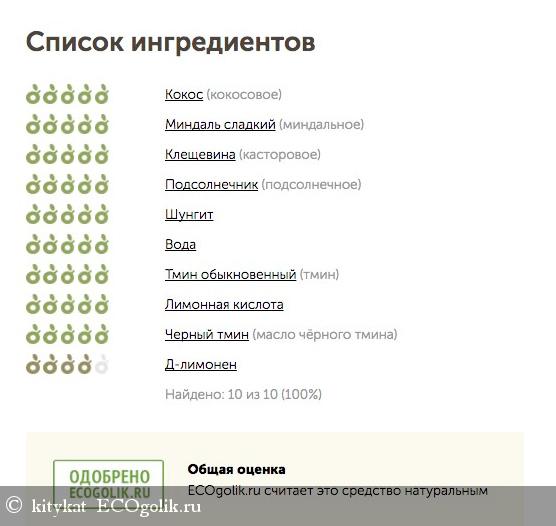 В составе содержится масло тмина чёрного, которое используется как антивозрастное средство, и оказывает антисептическое и антибактериальное действия, ускоряет восстановление клеток, помогает бороться с дерматитами, с экземой, псориазом.