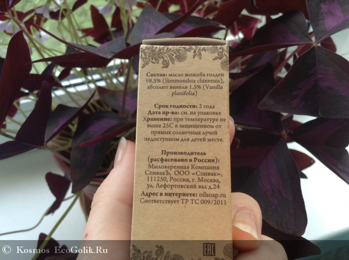 На коробочке нанесена информация, что масло 100% натуральное. Это, конечно, здорово, но такая низкая цена лично меня всегда смущает. Но оставлю этот пункт на совести производителя.