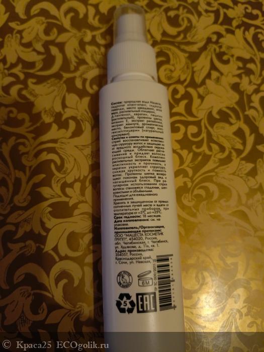 Распылитель удобный — брызгает мелкой дымкой, не струёй. Равномерно распределяется по волосам, не приходится потом локально вытирать лишнее.
