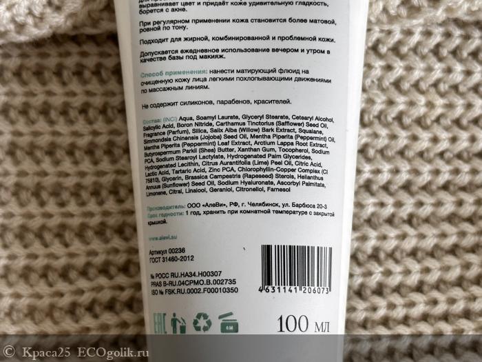 И он не только матирующий. Он еще и противостоит воспалениям на коже. В нем есть цинк и салициловая кислота, подсушивающие проблемную кожу, имеющие анти воспалительный эффект. В средстве присутствует также защита от солнечных лучей. Матирующий крем-флюид с цинком и салициловой кислотой SPF 15+ от AleVi по консистенции нежный, легкий, впитывается быстро и легко. Недаром в названии к нему присвоено имя - флюид. Как вуаль.