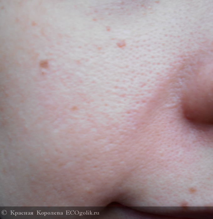 Конечно я извиняюсь за неприглядность фото, но кому важен результат, тому нужны наглядные пособия. Да, кожа не стала идеальной, но прыщи (в данном случае возле носа)