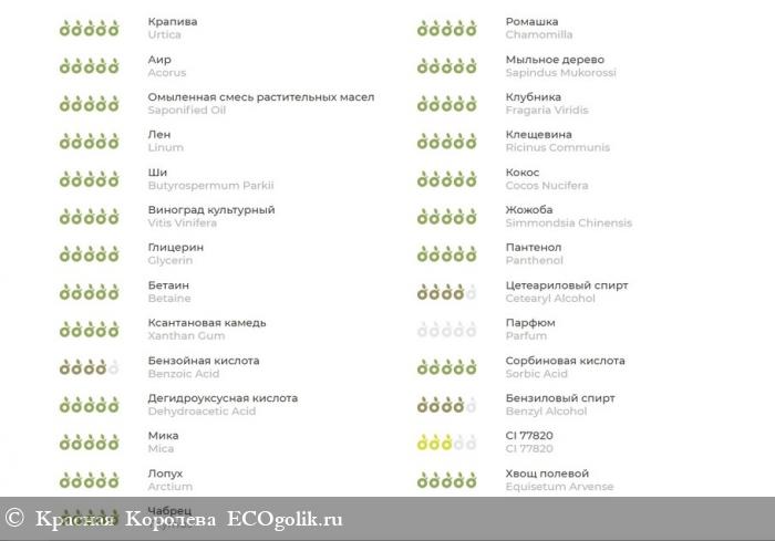 Мне очень импонирует то, что производитель даёт перевод в скобках, что помогает ориентироваться в компонентах. И как можно здесь убедиться, состав тут блестящий. Сложный, насыщенный полезными ингредиентами, абсолютно натуральный.
