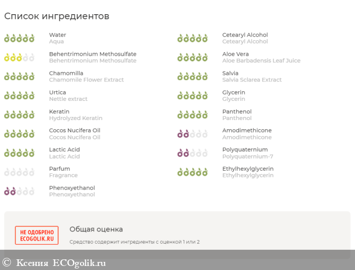 Хотела бы дополнительно обратить внимание, что не весь состав и компоненты данного кондиционера одобрил Экоголик. Имейте в виду, что было найдено несколько критичных компонентов, хотя по мне, с составом все более чем благоприятно.