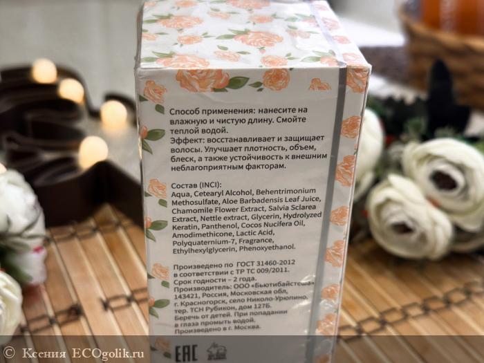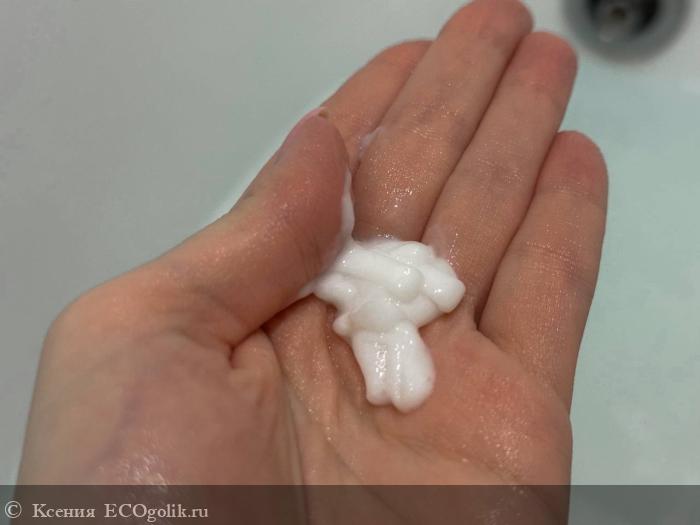 Кондиционер имеет кремообразную текстуру, которая легко распределяется по волосам. Он не слишком густой, что позволяет ему хорошо впитываться и не утяжелять волосы. Аромат продукта легкий и свежий, с ненавязчивыми цветочными нотами. Запах остается на волосах даже после высыхания, что добавляет приятного ощущения свежести.
