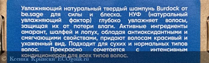 Одним из любимых продуктов be.sage является твёрдый увлажняющий шампунь, который отлично подошёл моим капризным волосам.
