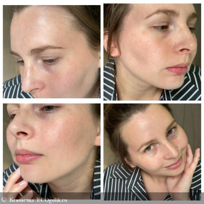 Я сразу заметила, как лицо моментально увлажнилось и даже заблестело от влаги, кожа покрылась словно защитной плёнкой, мимические морщины разгладились и немного выровнялся тон.