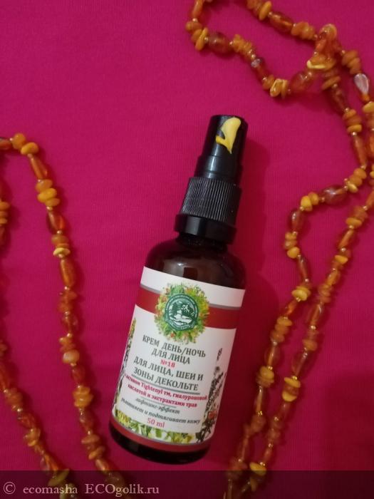 Универсальный дневной и ночной, антивозрастной, антиоксидантный, с низкомолекулярной гиалуроновой кислотой и купажом трав, а также легкими маслами, натуральный крем лифтинг № 18 предназначен для ежедневного ухода за лицом. У средства великолепный облепиховый аромат. Очень понравилось, что крем дозируется небольшими дозами благодаря особому дозатору, который выдает тонкую струю крема. Подходит как для лица, так и вокруг глаз. Состав полностью проверен и одобрен. Экономичный благодаря насыщенной текстуре. При этом впитывающие свойства прекрасны. Жирности не оставляет. Рекомендую! Увлажняет и питает кожу надолго, защищает от непогоды, обветриваний.