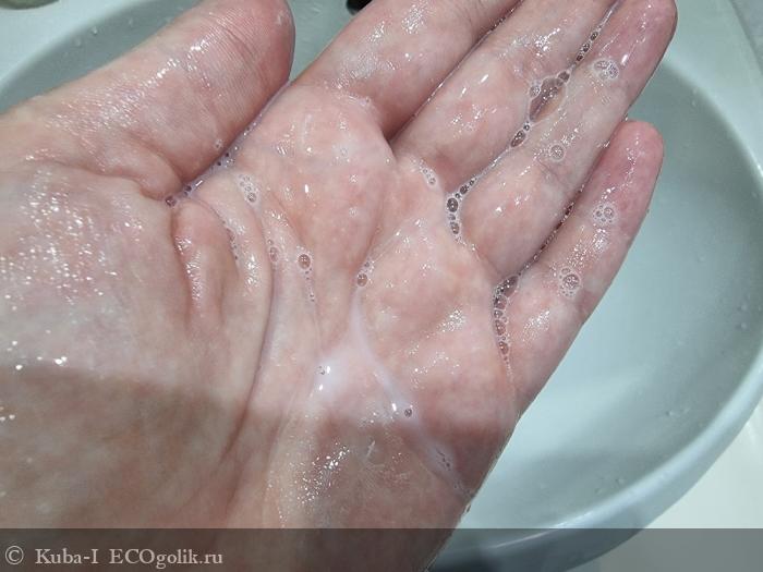 ну вот гель-пенки Шоколатте с похожей текстурой тоже не сильно пенятся. Но причина понятна, потому как у них в составе только омыленные масла. Тут же вроде бы есть ПАВ, и все же...