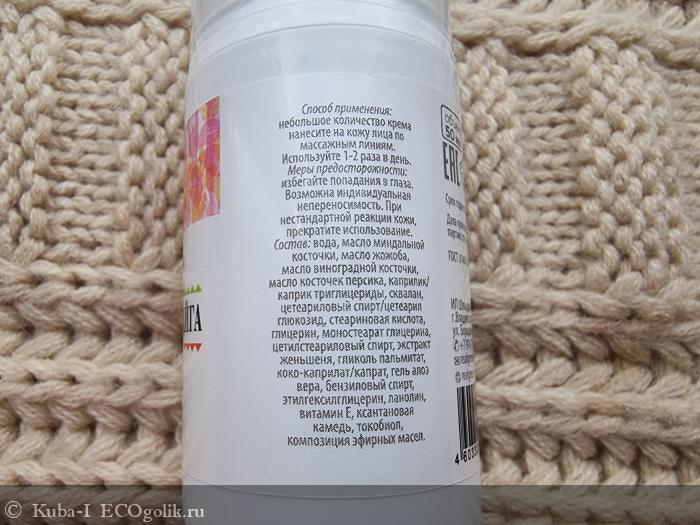 В составе много полезных компонентов: растительные масла, глицерин, сквалан, алое вера, эластин, коллаген, ланолин, витамин Е, эфирные масла.