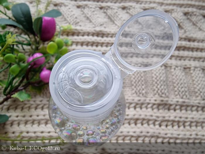 Крышка откидная защищает дозатор. Для применения достаточно открыть крышку, перевернуть флакон и нанести нужное количество тоника на ватный диск. Далее им протереть кожу лица.