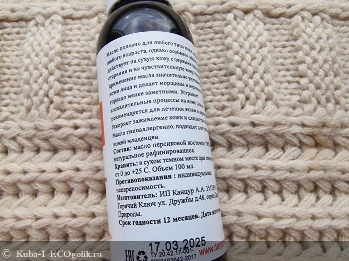 Я пользовалась многими растительными маслами, но недавно искала масло, чтобы отвечало рядом условий: натуральное, доступное в цене, подходило моей коже, можно было бы использовать для интимной зоны, а так же подходило бы для детской кожи. Выбирая среди широкого разнообразия, остановилась на масле персиковой косточки. Так же выбор сделала в пользу известного мне бренда - Дары Кавказской природы.
