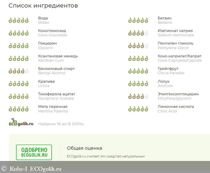 Список компонентов состава средства не большой, всего 16 компонентов, которые полностью одобрены сервисом Экоголика.