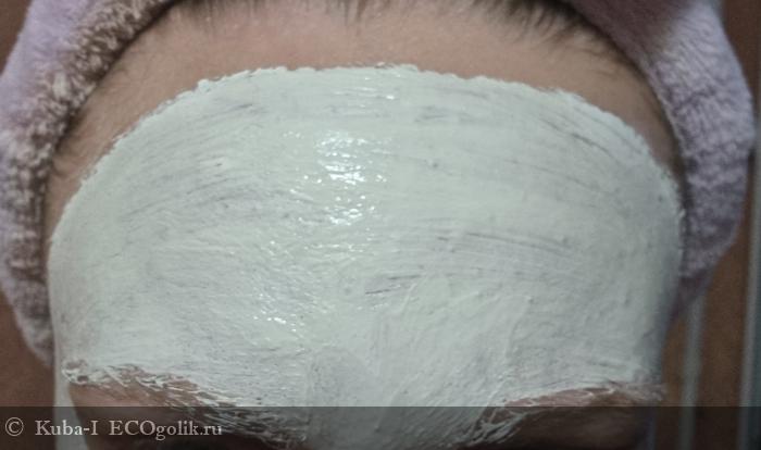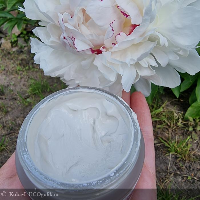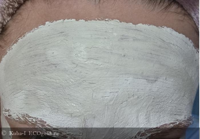 Консистенция маски бело-серого оттенка без какого-либо выраженного аромата. текстура плотная, густая. Распределяется по коже достаточно легко, что-то среднее между плотным кремом и глинятой маской.