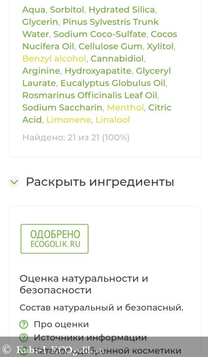 Состав пасты идеальный, он на 100% натуральный. Это подтвердил сервис Экоголика.