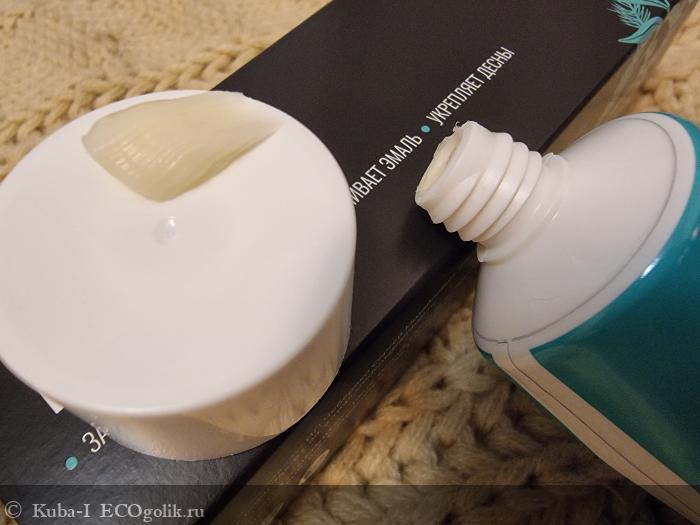 Паста имеет гелевую текстуру с молочным оттенком и ненавязчивым приятным мятным ароматом