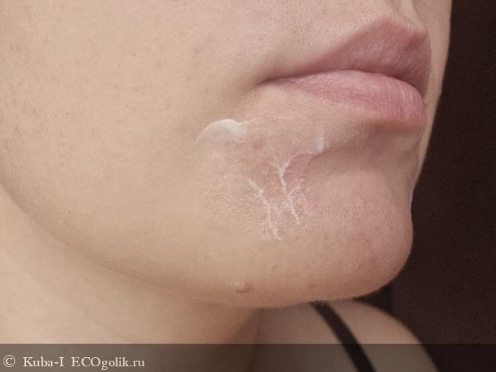 Крем наносится точечно, на пораженный участок кожи. Наношу пальчиками, стараясь охватить нужную территорию. Если прыщик одинокий, вбиваю крем подушечкой пальца и слегка распределяю. С нанесением нет никаких проблем. Минутка и крем впитался полностью, при этом нет пленки, стянутости, я его не ощущаю совершенно.