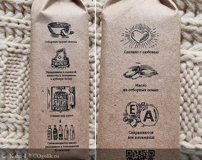 А также в картинках описывает процесс производства: Отборные сырые семена укладываются в льняной мешочек, который помещается в дубовую бочку. Под воздействием пресса получается свежевыжатое масло, которое далее разливается в стеклянные бутылочки.