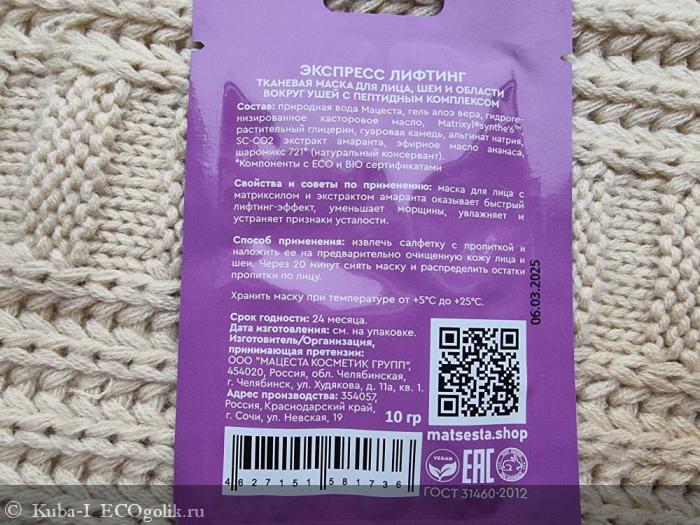 Kuba-I: Перед выходом в люди отлично подойдет Тканевая маска Экспресс-лифтинг с пептидным комплексом от Matsesta
