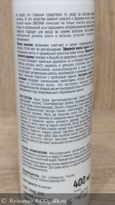 Если у вас суховатые волосы от природы или вследствие их частого окрашивания, химических завивок, и вы уже пробовали Шампунь для сухих волос от SIBERINA в тюбике, он вам подошел, то я настоятельно рекомендую взять его же, но в объеме 400 мл.