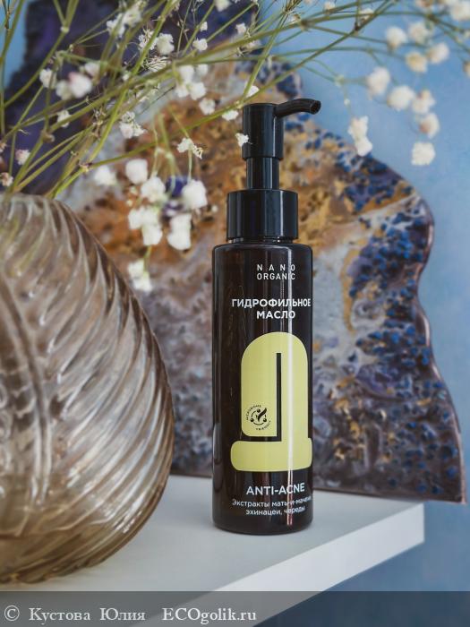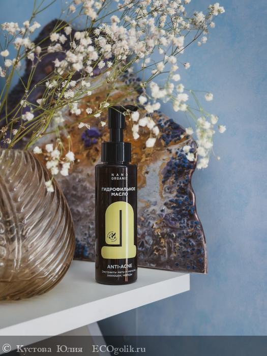 Речь здесь об очищении летом. Сейчас в ходу «полный фарш»: спф 50, минеральная пудра, иногда бб-крем, активная работа сальных желез на моей комби коже, вечно жарко (ту же пот), пылища на улице. Без хорошего очищения никуда. Снова взяла гидрофильное масло от Nano Organic. Весной у меня было масло с пометочкой Anti Age. Сейчас же, на лето, взяла Anti Acne для профилактики и качественного очищения от того самого «полного фарша».