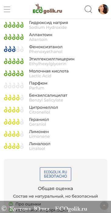 Кстати, состав, судя по анализатору состава на нашем сайте, очень даже)