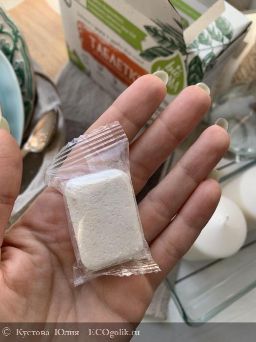 - Сами таблетки достаточно мягкие и пористые по структуре. Увы, некоторые из них крошатся внутри индивидуального пакета. Я не особо расстраиваюсь по этому поводу. Просто высыпаю образовавшийся порошок в отсек для таблеток и ставлю стандартный режим. На качество мытья или режим работы аппарата это никак не влияет.