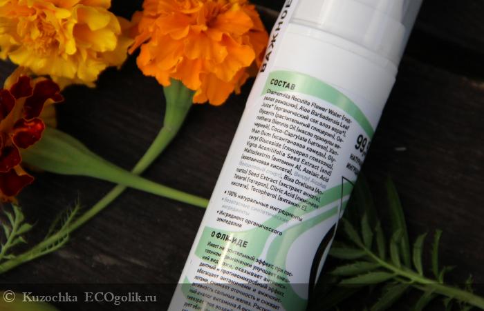 Chamomilla Recutita Flower Water (гидролат ромашки), Aloe Barbadensis Leaf Juice (алоэ вера сок), Glycerin (растительный глицерин), Oenothera Biennis Oil (масло примулы вечерней), Coco-Caprylate (цетиол), Xanthan Gum (ксантановая камедь), Glyceryl Glucoside (глицерил глюкозид), Vigna Aconitifolia Seed Extract (and) Maltodextrin (растительный витамин А), Azelaic Acid (азелаиновая кислота), Benzyl Alcohol (бензиловый спирт), Bixa Orellana (Annatto) Seed Extract (экстракт аннато), Totarol (тотарол), Citric Acid (лимонная кислота), Tocopherol (витамин Е).
