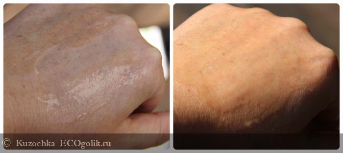 При распределении становится прозрачным. Впитывается быстро. Аромат "нейтральный", вызывающий различные ассоциации. Долго думала, что же мне напоминает этот запах, и пришла к выводу, что сыр в белой плесени (бри, камамбер).