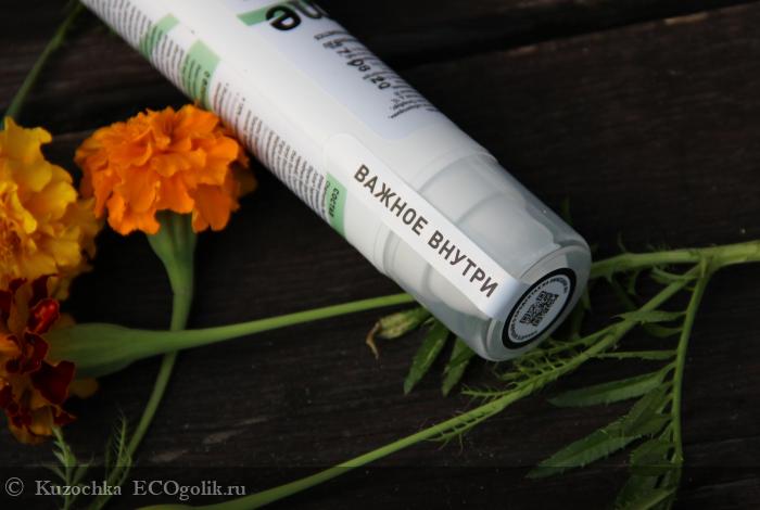 Заострю внимание еще на одной "фишке": на донышке флакона размещен стикер с информацией о знаках переработки, показано, из каких материалов изготавливается упаковка для продукции бренда.