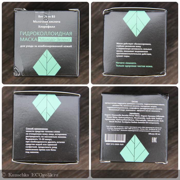 Маска предназначена для комбинированной кожи, активными компонентами в ней являются витамин В3, молочная кислота и хлорофилл.