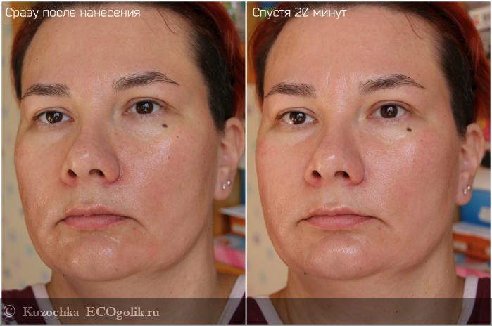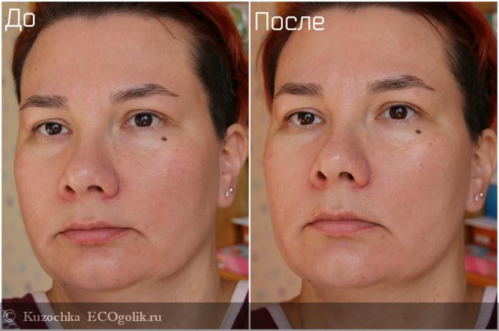 На фото "после" после смывания маски нанесена сыворотка для век и увлажняющий тоник. Сейчас моя кожа в хорошем состоянии, поэтому эффект не очень заметен, но всё же видны свежесть и более светлый тон. Маска увлажняет кожу, придает упругость, немного осветляет поры.
