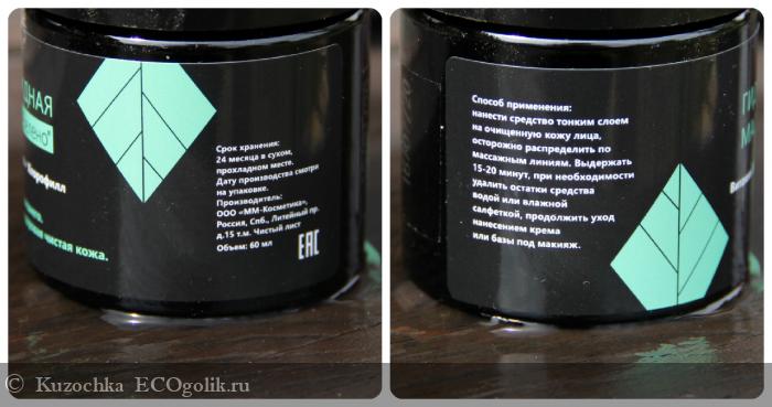 На самой баночке продублирован способ применения (маска на 15-20 минут), срок хранения, контакты производителя, объем.