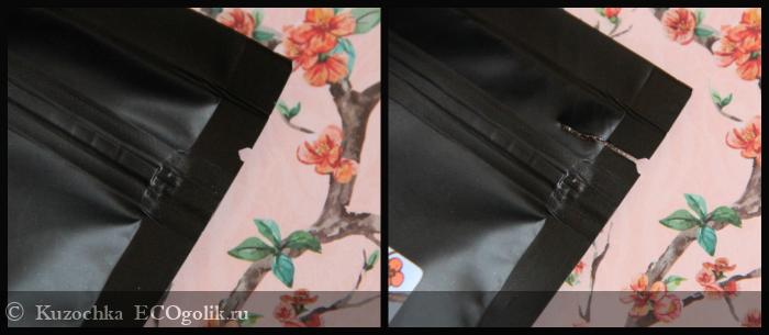 Зип-застежка изначально была открыта в запаянном пакете и основательно засорилась скрабом, я ее так и не смогла прочистить и нормально закрывать в дальнейшем.