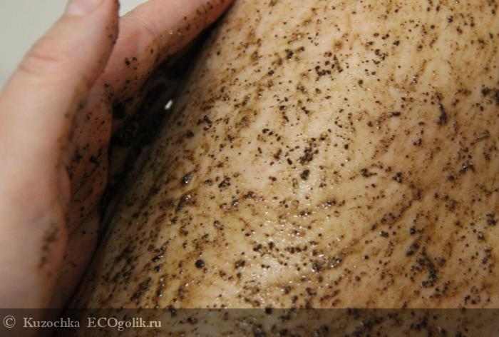 Как и обещает производитель, скраб легко смывается, не оставляя жирной пленки на коже. Но: действие масел ощущается, кожа слегка масляная после смывания средства. Большой плюс, что не нужно ждать впитывания масел - после вытирания можно сразу одеваться. В итоге процедуры получаем мягкую гладкую кожу, к которой приятно прикасаться. На теле остается кофейный запах с примесью жасмина на несколько часов. В составе эфирные масла жасмина, лимона, нероли, но в аромате солирует жасмин. Необычное сочетание кофе+жасмин