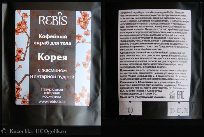 Продолжаю делиться впечатлениями от использования средств бренда REBIS. У меня два скраба, и первым я попробовала Кофейный скраб для тела "Корея" , с жасмином и янтарной пудрой.