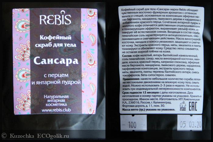 Kuzochka: Кофейный скраб для тела «Сансара», с перцем и янтарной пудрой от REBIS