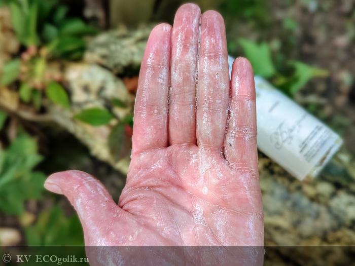 - Эта обильная пена смывается буквально парой душевых струй, абсолютно не оставляя инородных ощущений, а-ля пленка, липкость и т.п.