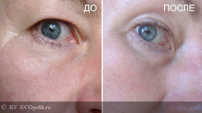 ). Минут через 5 заметно, средство начинает активно действовать - кожа уплотняется, повышается тургор, расправляются морщинки и заломы, сходит припухлость и помятость.